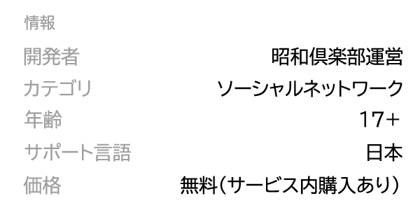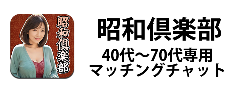 「昭和倶楽部」は、50代、60代、70代の紳士・熟女の熟年世代が出会いマッチングしチャットするLINE連携型チャットアプリになります。